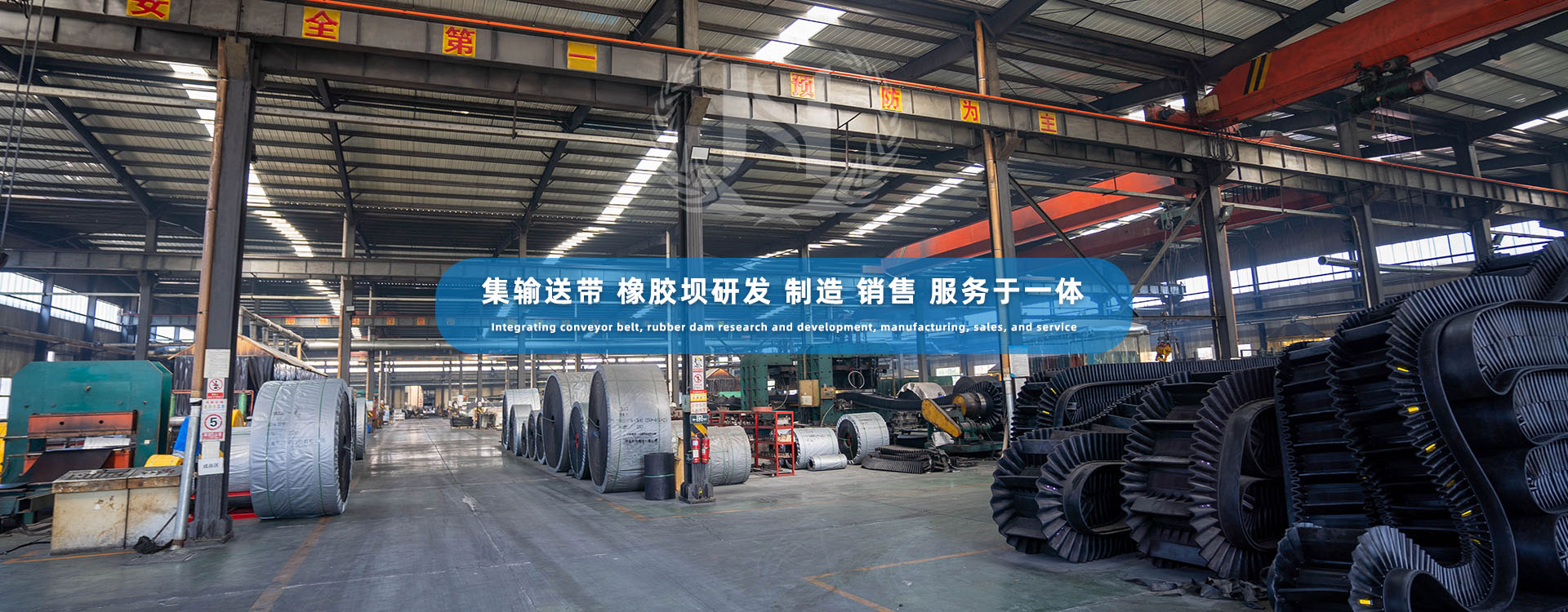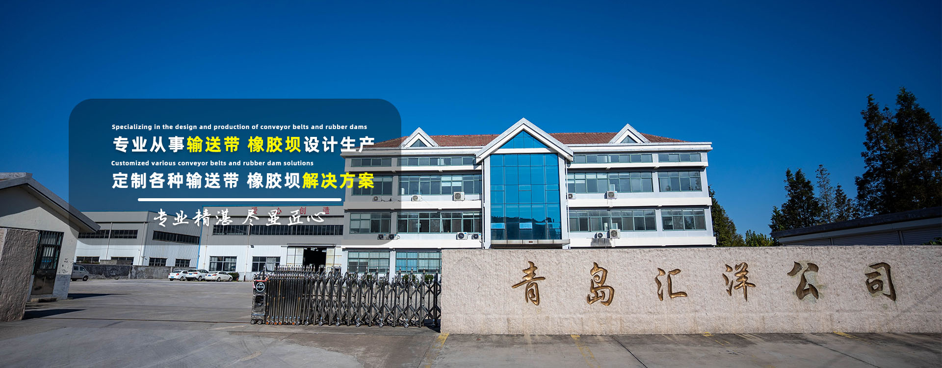 青岛汇洋矿山带有限公司坐落于青岛市黄岛区滨海街道,成立于2011年,公司占地面积60亩,厂区面积1万平方,是国家级“高新技术企业”,主要生产、销售橡胶坝及各种普通织物芯输送带、钢丝绳芯输送带、阻燃输送带、耐酸碱输送带、耐油输送带、耐寒输送带、大倾角挡边输送带、管状输送带、花纹输送带、斗提机专用输送带、配套金属结构等,广泛应用于水利工程、钢铁、煤矿、矿山、冶金、水泥制造等行业,为全球用户提供输送带及橡胶坝解决方案。