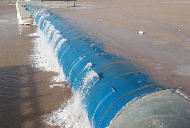 由于河流流量流速的多变状态、坝溢出流量、坝下游尾水等原因,橡胶坝可能整体震动,这需要用扰流板解决。在水漫过坝时,扰流板往坝下渗气减少坝下游负压,从而减少橡胶坝曩体震动,使坝袋保持稳定。